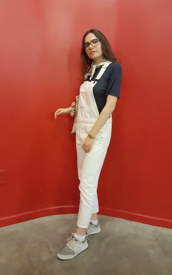 Why did you choose this particular outfit? “I chose this outfit because I love overalls, and I love white denim during summer, and the necktie just ‘tied’ the entire outfit together.”