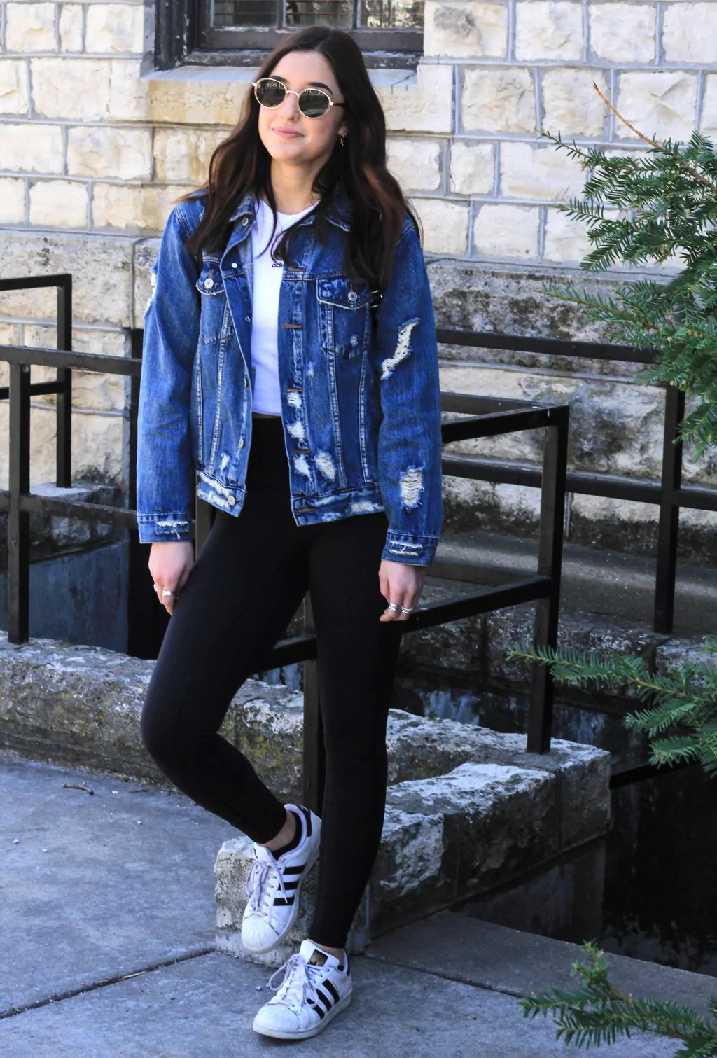 Bailey is a business woman with a deep-rooted love for grunge. She manages to spice up accounting classes by wearing ’90s and early 2000s-inspired outfits. As the semester continues to get crazier, she still finds motivation to wear perfectly put-together looks, like this one. This vintage Adidas crop top and denim jacket combo shows off Bailey’s signature style.