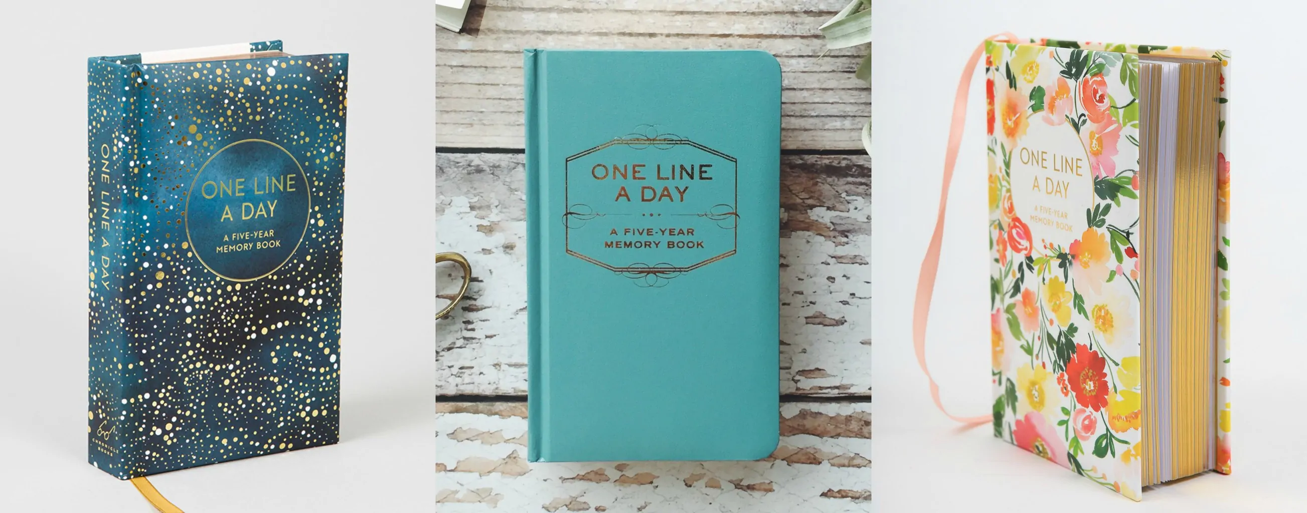 From Left to Right: Starry Journal – Amazon; Turquoise Journal – Amazon; Floral Journal – Amazon