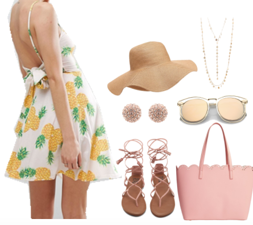 Nothing says summer-ready more than a pineapple print sundress! A floppy sun hat adds elegance to your look while also working to shield your eyes from that blinding sun.