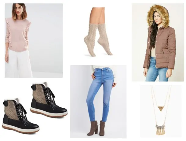 Products: Sweater – ASOS, Coat – Forever 21, Jeans – Forever 21, Socks – Nordstrom, Boots – Target, Necklace – Charming Charlie