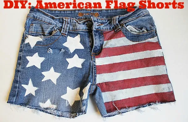 Today, I’m going to show you how to make your very own American Flag Shorts. Whether you need a last-minute 4th of July outfit or just want to rock an awesome pair of shorts, grab a pair of old jean cutoffs and let’s get started!
