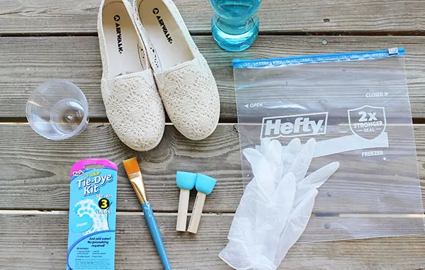 If you’re using tie dye, you will need to allow the dye to set for about 6-8 hours. To do this, place the shoes into a plastic zip-top bag and seal it to keep the shoes damp. Once the die has set for the recommended time, remove them and follow the rinsing instructions on the dye.
