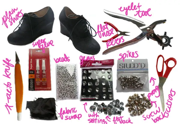 - A pair of inexpensive and plain shoes, preferably in a softer fabric. (I got these wedge lace-up booties on eBay.)