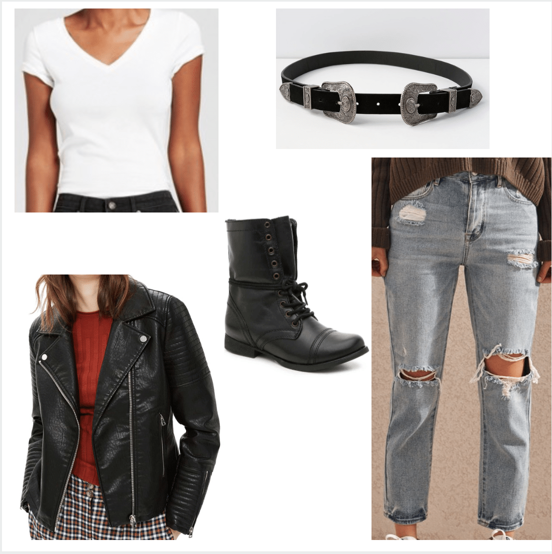 Products: T-Shirt – Target, Boots – DSW, Jacket – Nordstrom, Belt – Lulus, Jeans – Pacsun
