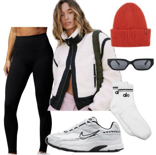 By adding in cool accessories like some trendy sunglasses and a bright beanie hat for a pop of color, you will elevate this outfit and give it a “model-off-duty” look that makes it just as great for running errands or school as it is for going to a workout class.