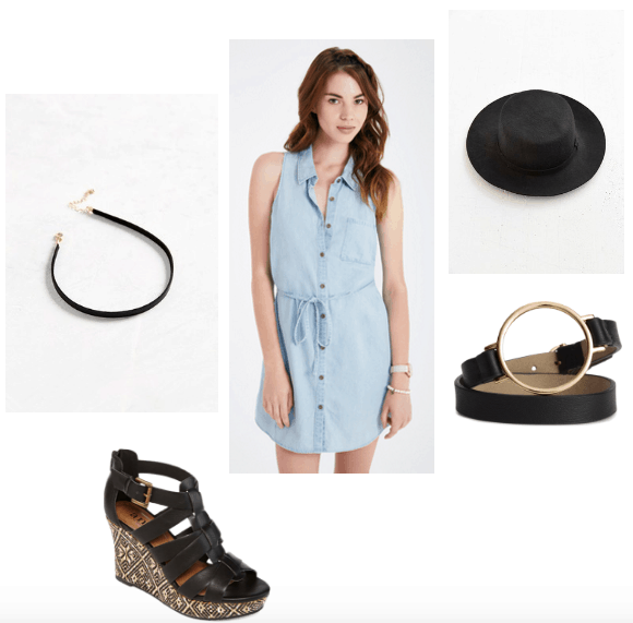 If you feel like deep winter colors overwhelm your outfits when you wear them in the warmer months, don’t put them in your actual clothing pieces. Wear lighter, brighter pieces, like this denim dress, and accent them with the dark colors you love. Your outfit will still speak to your personal style, but will maintain the summer vibe you’re going for!
