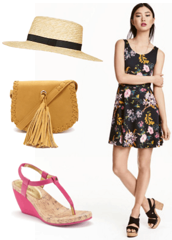 Nothing says summer like floral. It’s a time for blooming flowers and green life. Move your black into summer by pairing it with a seasonally appropriate floral pattern, like this busy skater dress. A dark color can hardly look wintry with a pattern this lively!