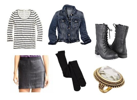 This skirt is a great option if you aren’t a huge fan of sparkling pieces. It’s still sequined, but since the sequins are matte, it gives off an understated vibe. If you want to make an impact, try wearing a sequined skirt with a basic cotton top in a simple pattern — like stripes. Although I’m usually not a fan of jean jackets, I really like the contrast between the feminine sequins and the rugged feel of denim. Add some opaque tights and lace-up boots to create a stylish everyday look. Finally, accessorize with a simple yet gorgeous oversized ring.