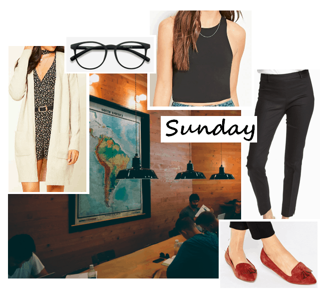 Sundays are made for catching up on work and meetings. Pull on these trouser-leggings for a comfortable, but sleek vibe. On the top, wear a black crop top and a long cream cardigan, which basically serves as a portable blanket.