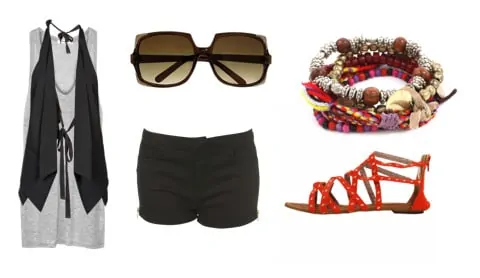 Anika told me that she often wears shorts, a tank top, a vest, and some cute accessories for a regular day going to class. I picked out this outfit because the base of it is extremely flexible and can be worn for a variety of activities. The sunglasses will protect you from the strong sun there, while the bracelet and shoes add a great pop of color to your look.