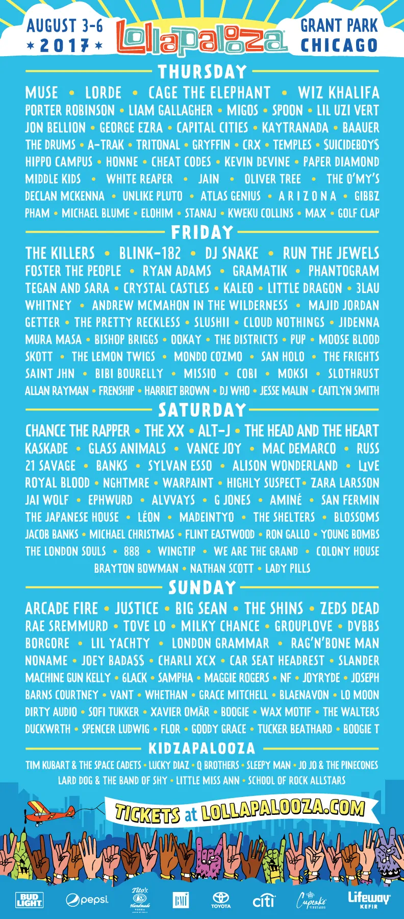 From August 3-6, Chicago’s very own Grant Park will house some of the best music artists to grace our ears. Get ready for 8 stages and over 170 talented musicians from all over the world. Here’s the full Lollapalooza lineup: