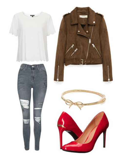 Products: Tee, Jeans, Jacket, Bracelet, Heels