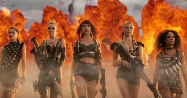 Taylor’s opening scene as Catastrophe shows her efficiently taking out nameless men in suits with her partner (and soon to be betrayer!) Arsyn (AKA: Selena Gomez).