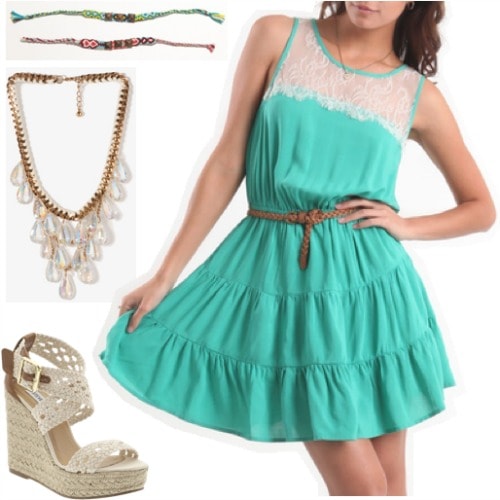 Capture Ali’s pretty style with a lace-accented dress and crochet wedges, then add a tiered statement necklace for a trendy aesthetic. On the show, Ali gave Spencer, Hanna, Aria, and Emily friendship bracelets to match her own, so tie on a few bracelets similar to theirs to complete the outfit!