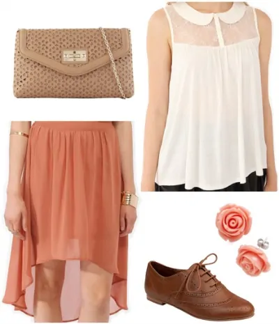 Dorothy’s life in Kansas may be in grayscale, but you can rock this Technicolor outfit inspired by life on the prairie! Wear a pretty cream blouse tucked into a trendy high-low skirt for a relaxed, romantic feel. Slip on a pair of oxfords, grab a clutch bag, and put in poppy-colored stud earrings to complete the look!