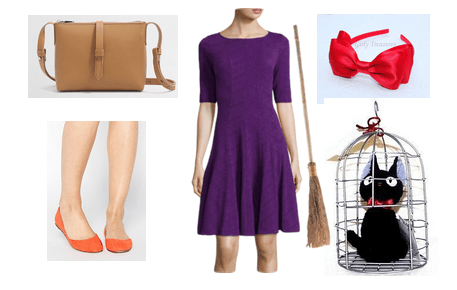 Kiki‘s look is much more girly and unique than that of your traditional witch, so she’s a great option if you want to rep the spirit of Halloween with a playful twist. Her deep plum dress is season-appropriate and only needs to be paired with orange ballet flats and a giant red bow (the bigger the better!). I for one am usually too lazy to carry around a prop all night, but if you’re truly committed, a broom is a great addition to the ensemble.