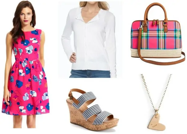 Products: Dress | Cardigan | Handbag | Wedge | Necklace