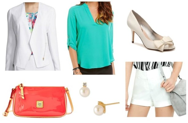Products: Blazer | Blouse | Pump | Purse | Earring | Short