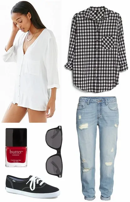 Channeling that, slip into some comfy boyfriend jeans and your favorite stylish sneakers, then toss on a chic button-down. Gingham is a trendy print for the warmer months, so don’t forget to add that, whether it’s worn on top or tied around your waist. A dash of red is always a necessity, so I recommend coating your nails in this delicious rouge shade.
