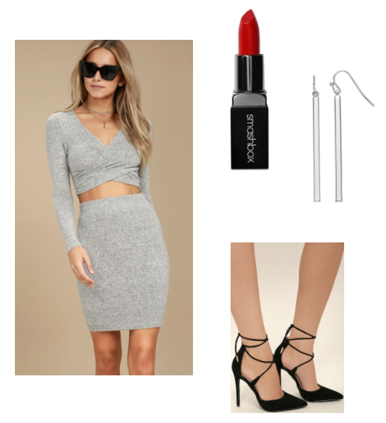 Our goal here is to create an outfit inspired by the video… that will actually work for a night out in college. This heathered two-piece dress is perfect! As a bonus, you can use the two parts as a skirt and top to spruce up your other outfits! Pair the set with some black strappy heels, dangling silver earrings and a red lip and you’re good to go, Selena-style.