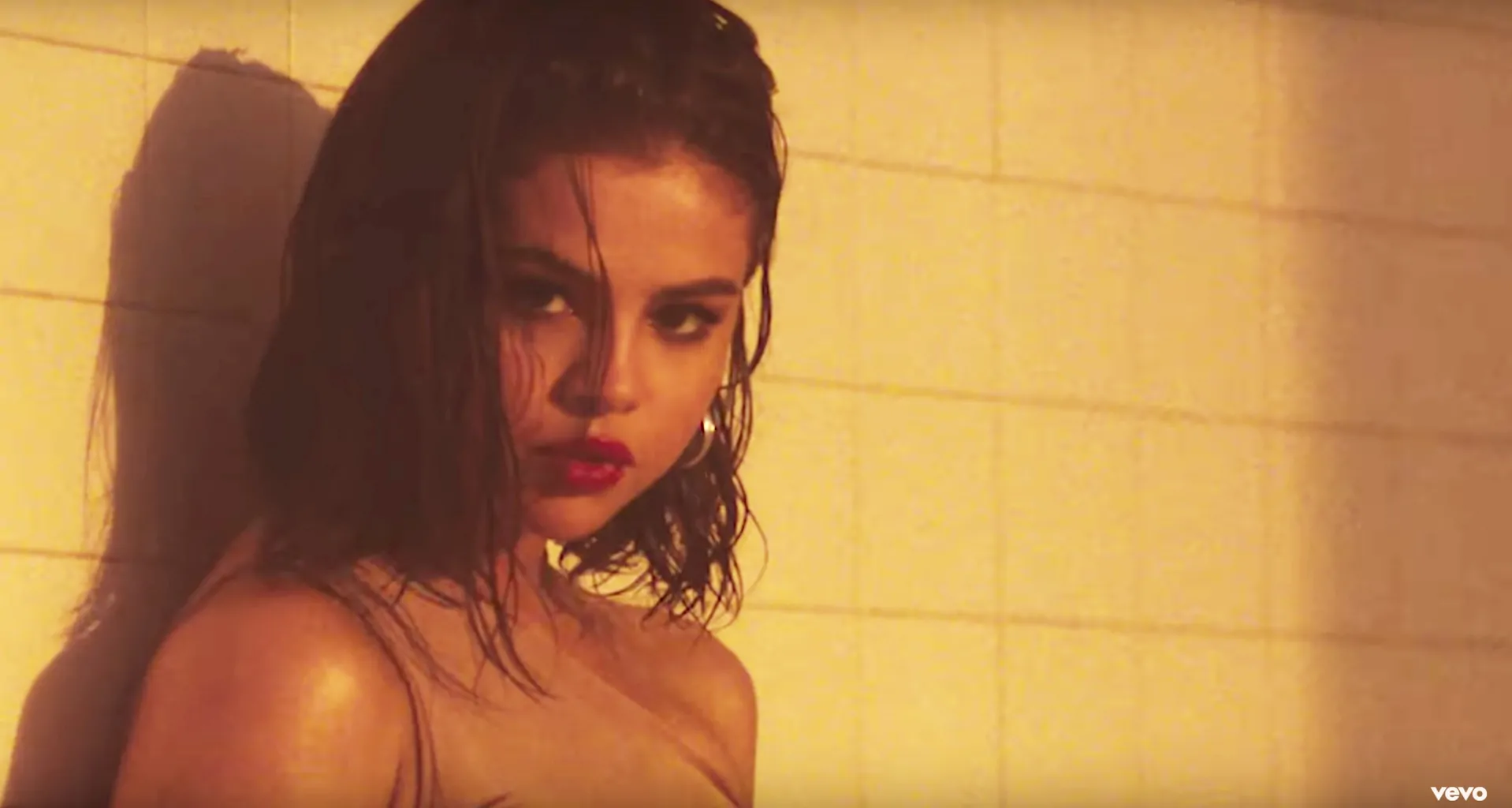 The music video for the track features eye-catching dresses paired with minimal jewelry. One of the looks in the video has Selena in a beautiful rhinestone two-piece dress — stunning!