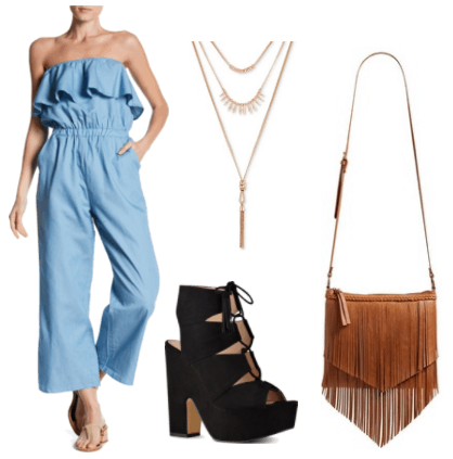 Products: Jumpsuit – Nordstrom Rack, Shoes – Nine West, Necklaces – Macy’s, Bag – Nordstrom