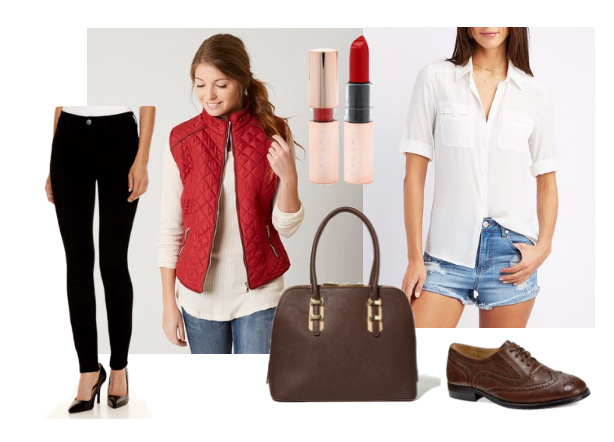 Products: Vest – Buckle, Shirt – Charlotte Russe, Jeggings- JCPenney, Shoes – Macy’s, Bag – Charming Charlie, Lipstick – Forever 21