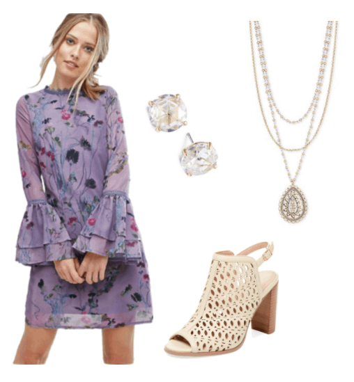 Products: Dress – ASOS, Booties – Gilt, Earrings – Saks Fifth Avenue, Pendant – Macy’s
