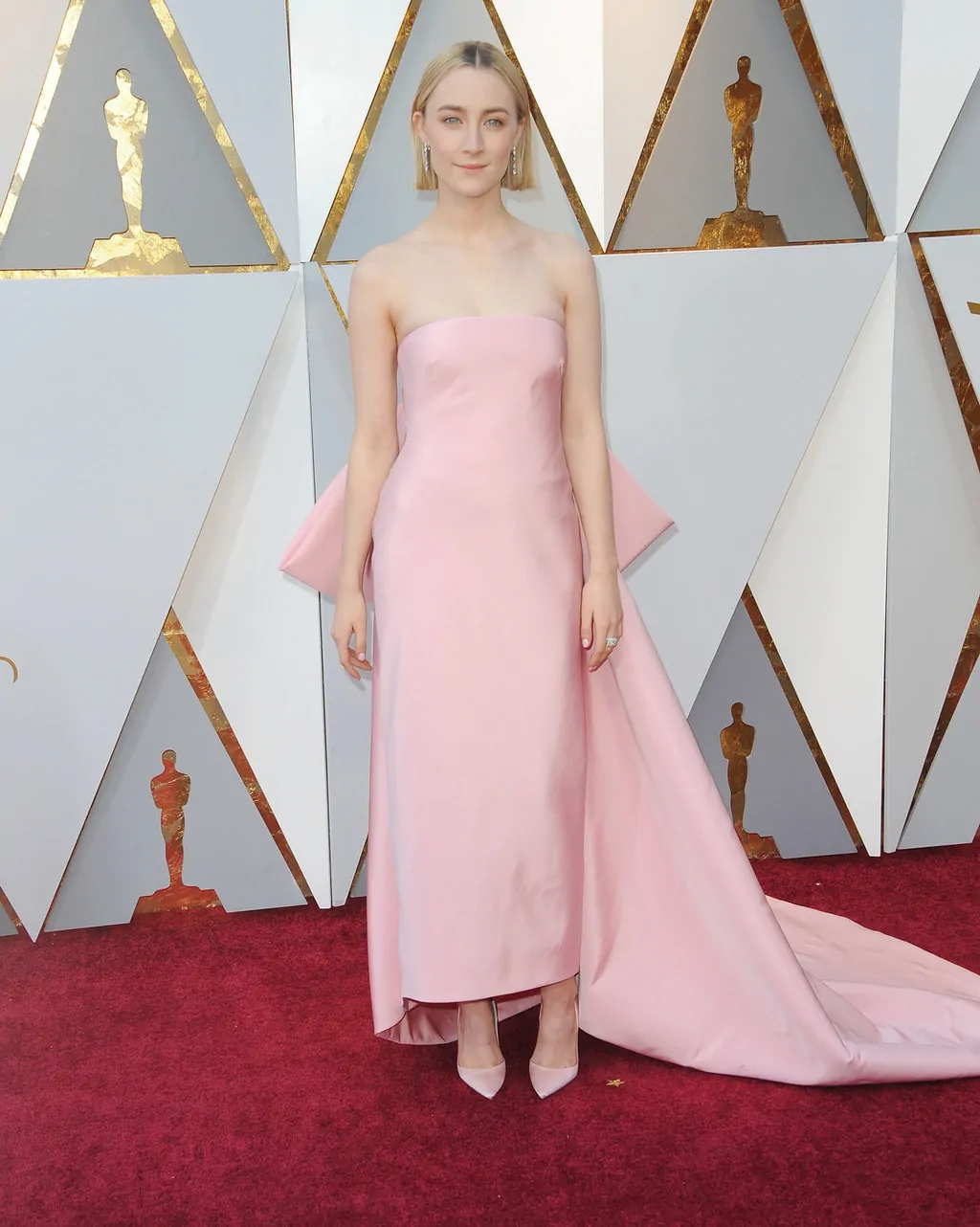 Best Actress nominee Saoirse Ronan was every part the Hollywood princess in a custom Calvin Klein gown worn with a sleek bob. The look harkened back to the Ralph Lauren gown Gwyneth Paltrow wore when she won her Best Actress Oscar.