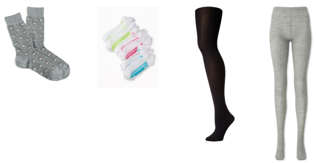 Products: Trouser Socks – J.Crew, Ankle Socks – Old Navy, Black Tights – Zappos, Gray Tights – Uniqlo