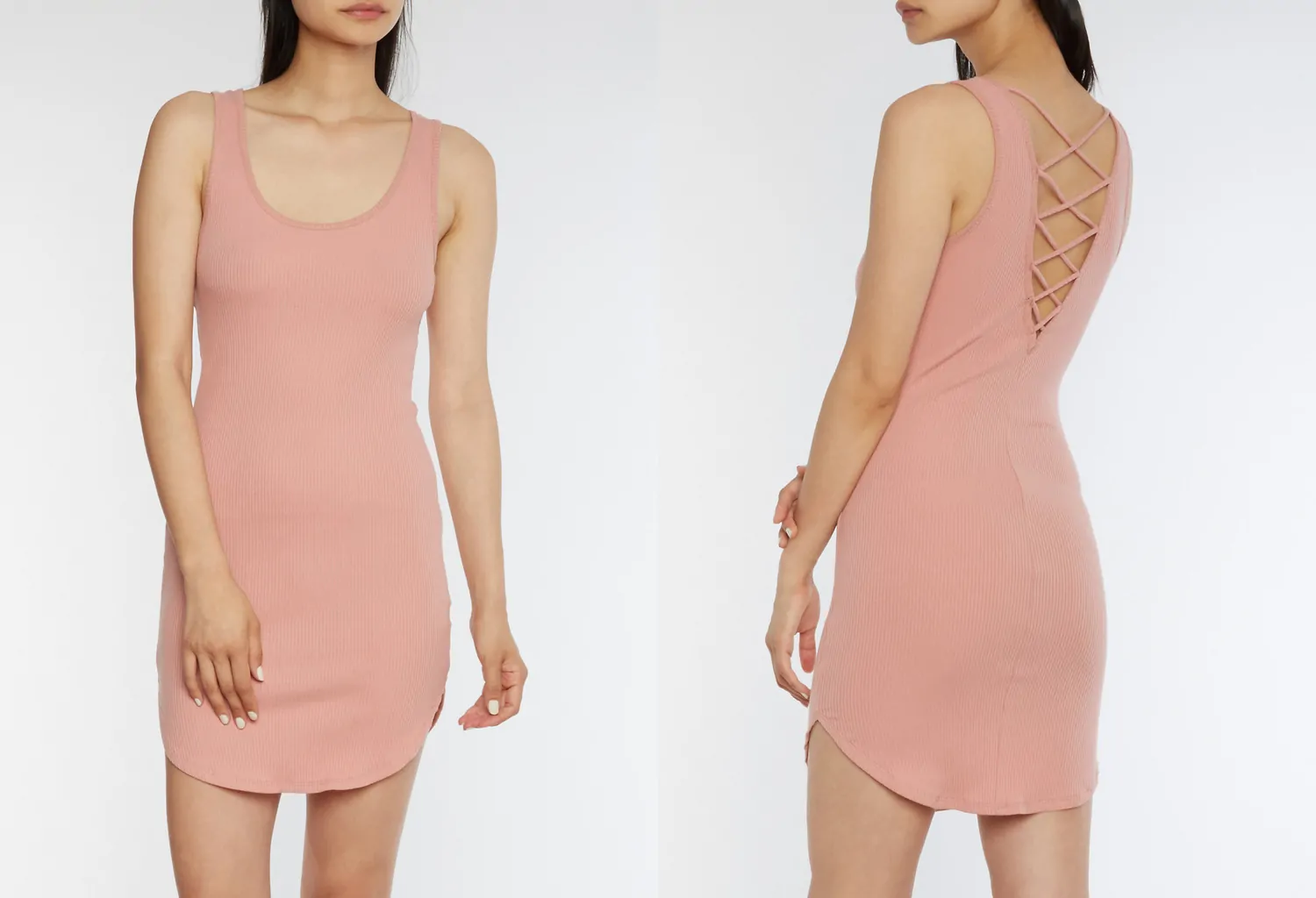 Rainbow Stores millennial pink body con dress with cris cross back detail - just $7!