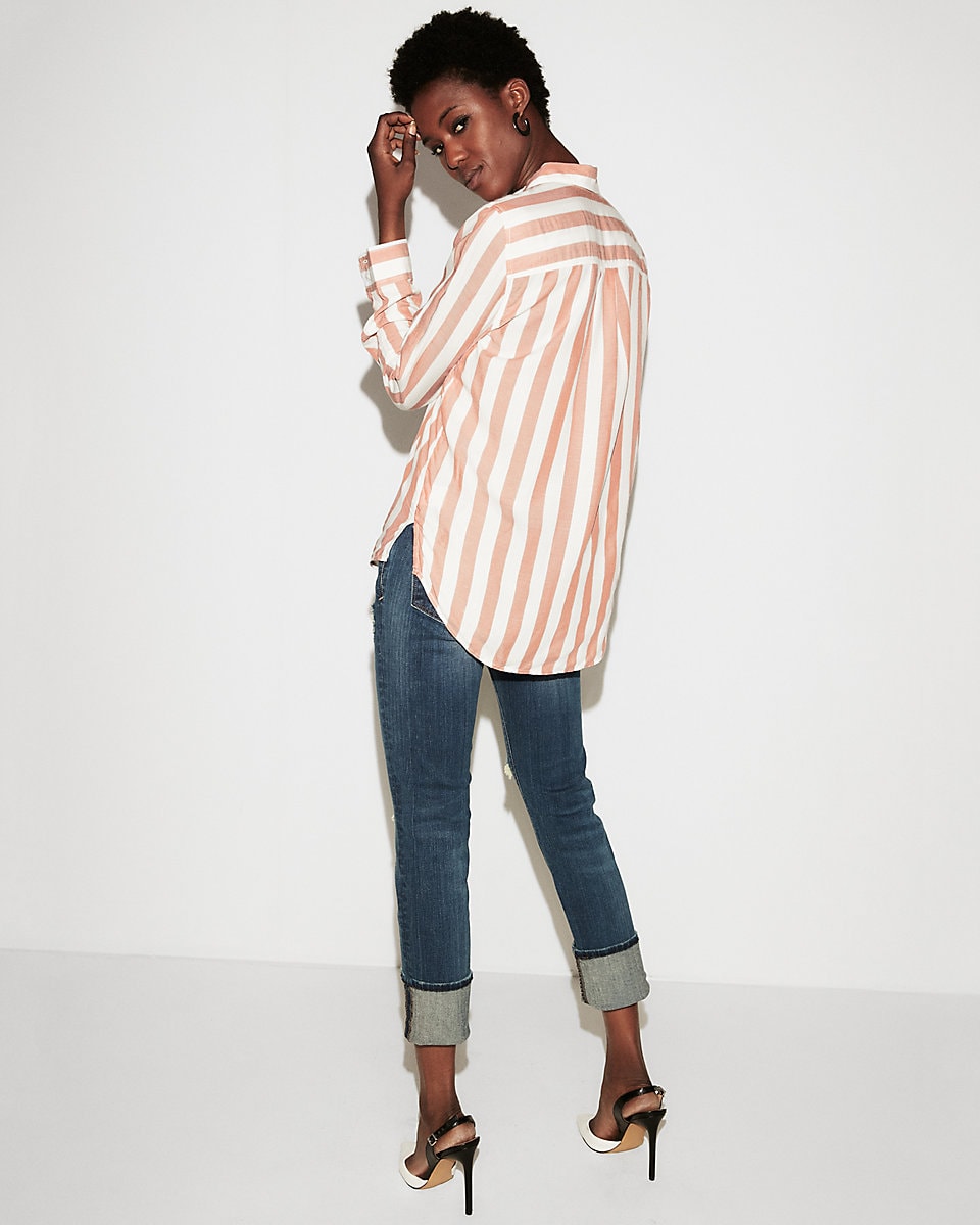 We love a good stripe, and spring 2018 has turned the tried-and-true print on its side (literally!). But don’t be wary of vertical stripes… the graphic up-and-down lines are actually ultra-chic.