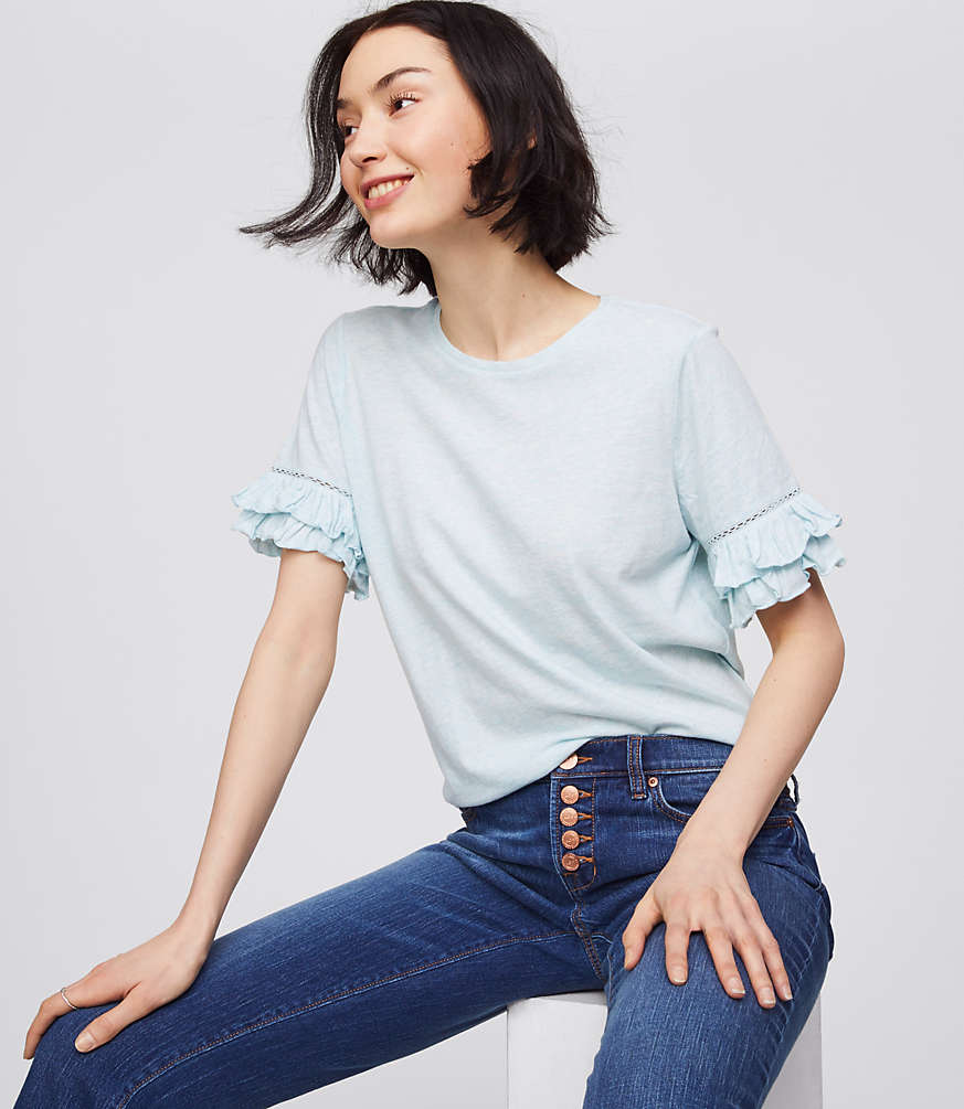 A t-shirt is a staple in every girl’s wardrobe and the hottest styles this year feature ruffled sleeves. What we love about this trend is how accessible it is. There are tons of options out there—from bold and voluminous to chic and understated—in every color of the rainbow.